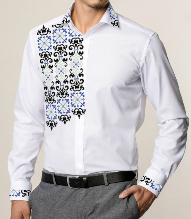 Заготовка для вишивки бісером або нитками чоловічої сорочки, з нанесеною повно колірною схемою, яка не змивається.